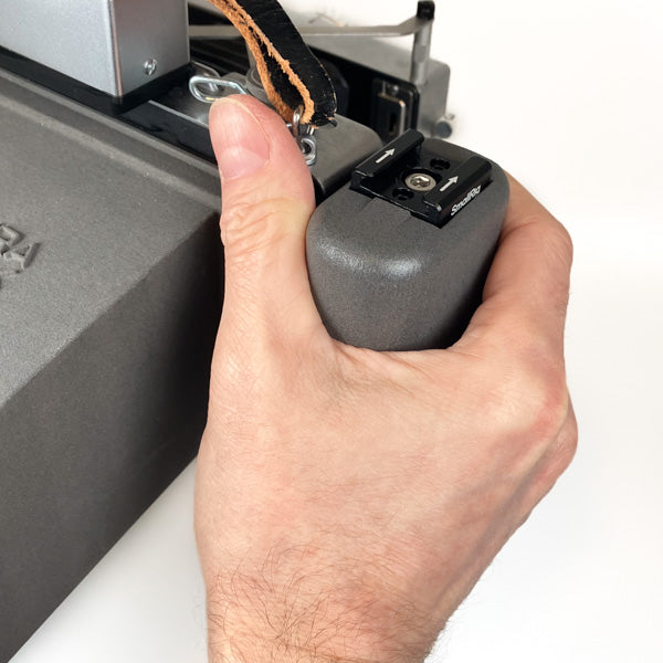I designed a sturdy grip accessory that attaches directly to the ObscuraFlex adapter for Polaroid Land Cameras**.