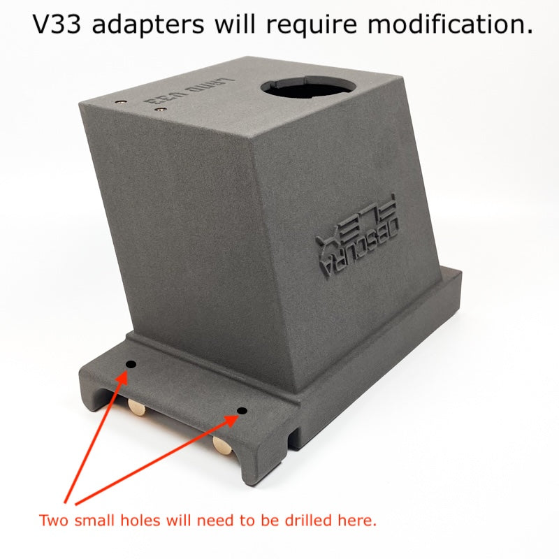 ** Some early adapters are incompatible with this accessory (prior to mid-2025). Later adapters will need modification to attach the grip by drilling two small holes through the plastic. All V35 or later adapters (2026 and beyond) will accept this grip without modification.